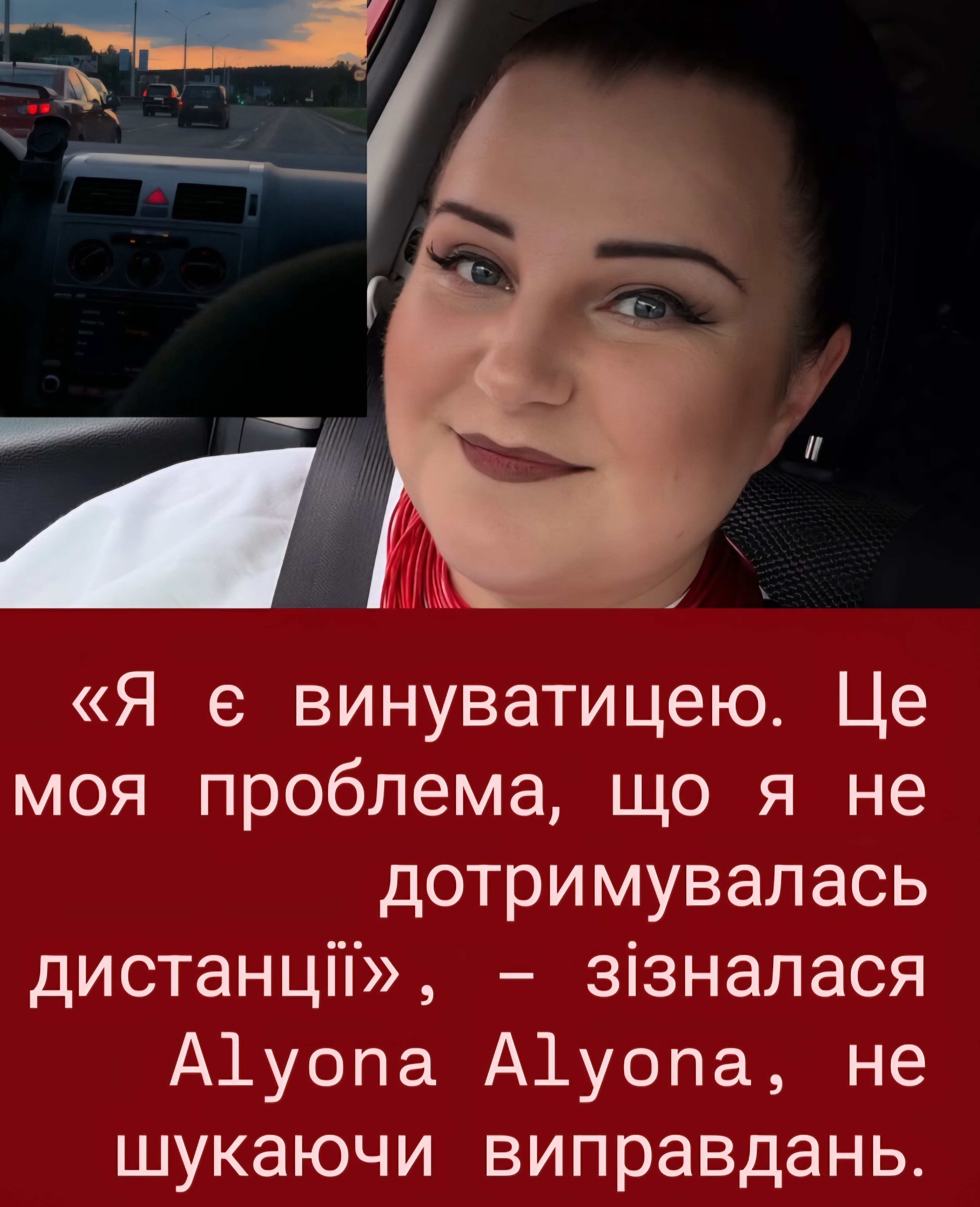 «Їдучи за кермом, я зрозуміла – концентрація не та. Моя порада: сідайте за кермо, коли ви повні сил, коли ви живчик. Якщо ви втомлені, краще відпочиньте або передайте керування», – радить Alyona Alyona.